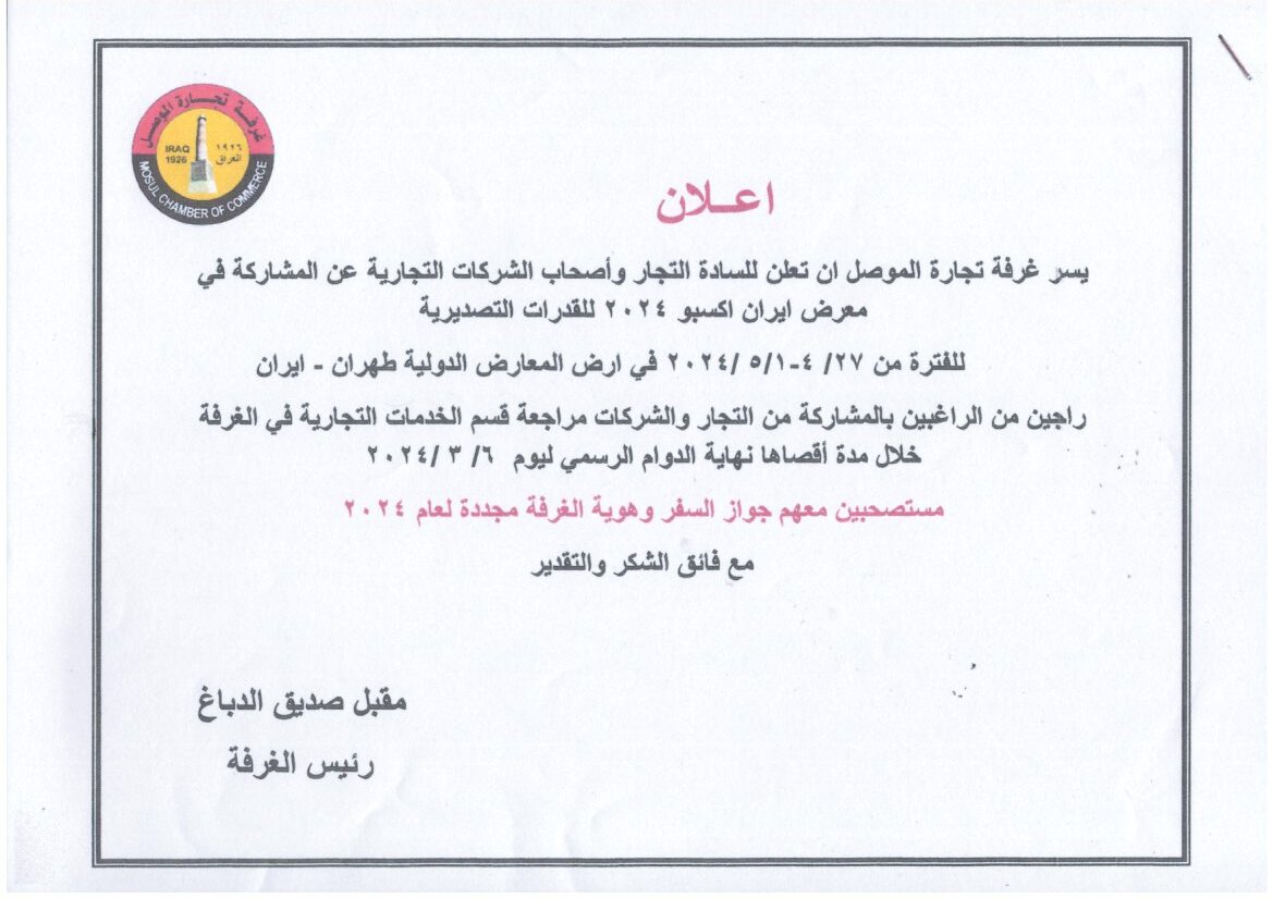 بدعوة كريمة من قبل جامعة الموصل كلية الادارة والاقتصاد وبدعم من البنك المركزي العراقي حضر النائب الثاني لرئيس الغرفة السيد قتيبة عبد الله شنشل المؤتمر العلمي الاول الموسوم(تأثير بيئة الاعمال الحديثة على مهنتي المحاسبة والتدقيق) صباح يوم الاربعاء الموافق 28/شباط الجاري على أروقة المنتدى العلمي الادبي لجامعة الموصل الذي اقيم