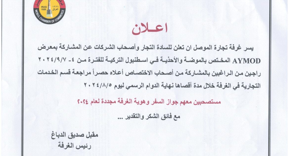 الرئيسية ⁄ المعارض والمؤتمرات ⁄ اعلانالمعارض والمؤتمرات اعلان MCC 6 يونيو، 20246 يونيو، 2024163 شارك على فيسبوكشارك على تويتر شارك على فيسبوكشارك على تويتر تصفّح المقالات السابق اعلانالتالي النشرة الاسبوعية MCC