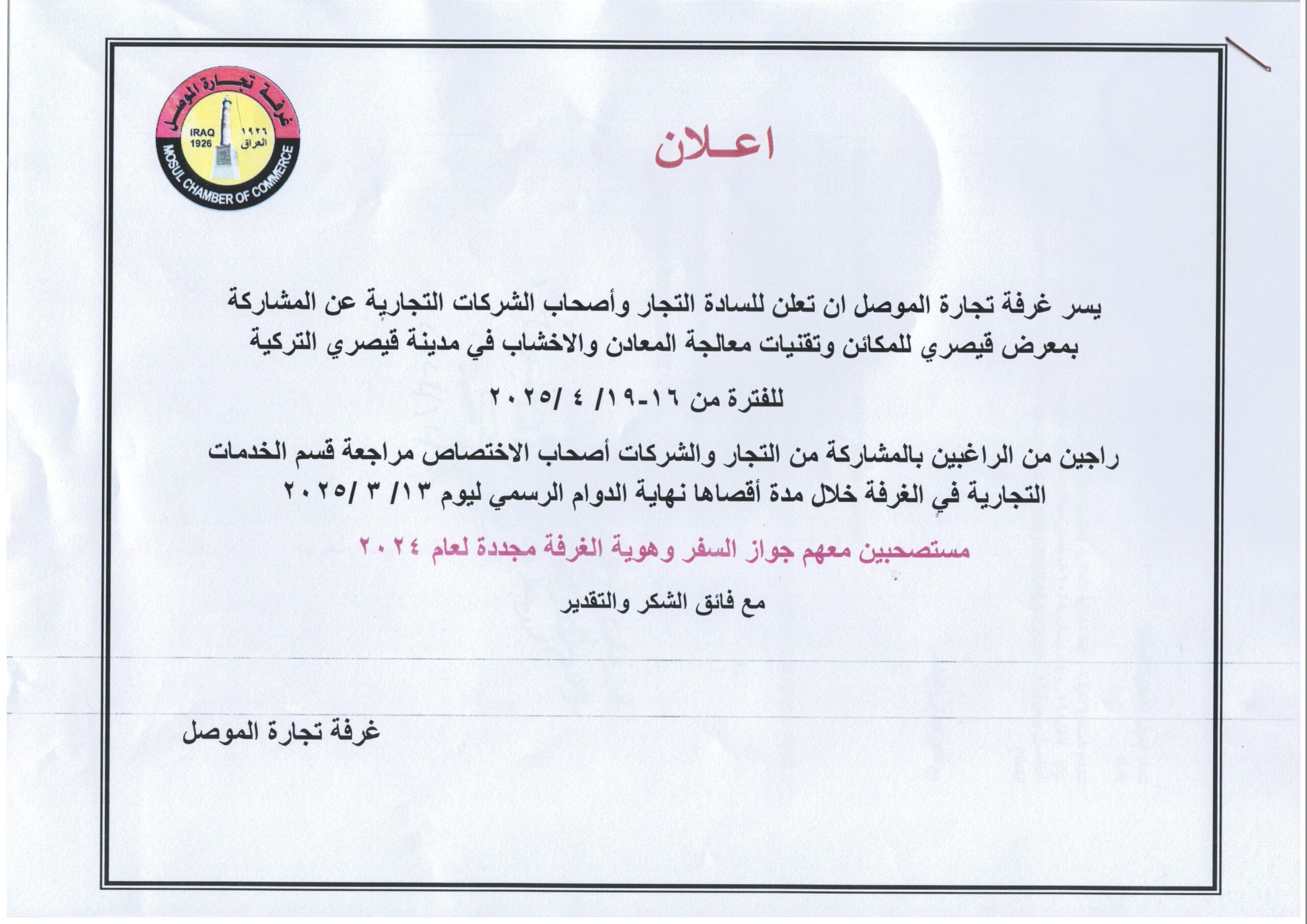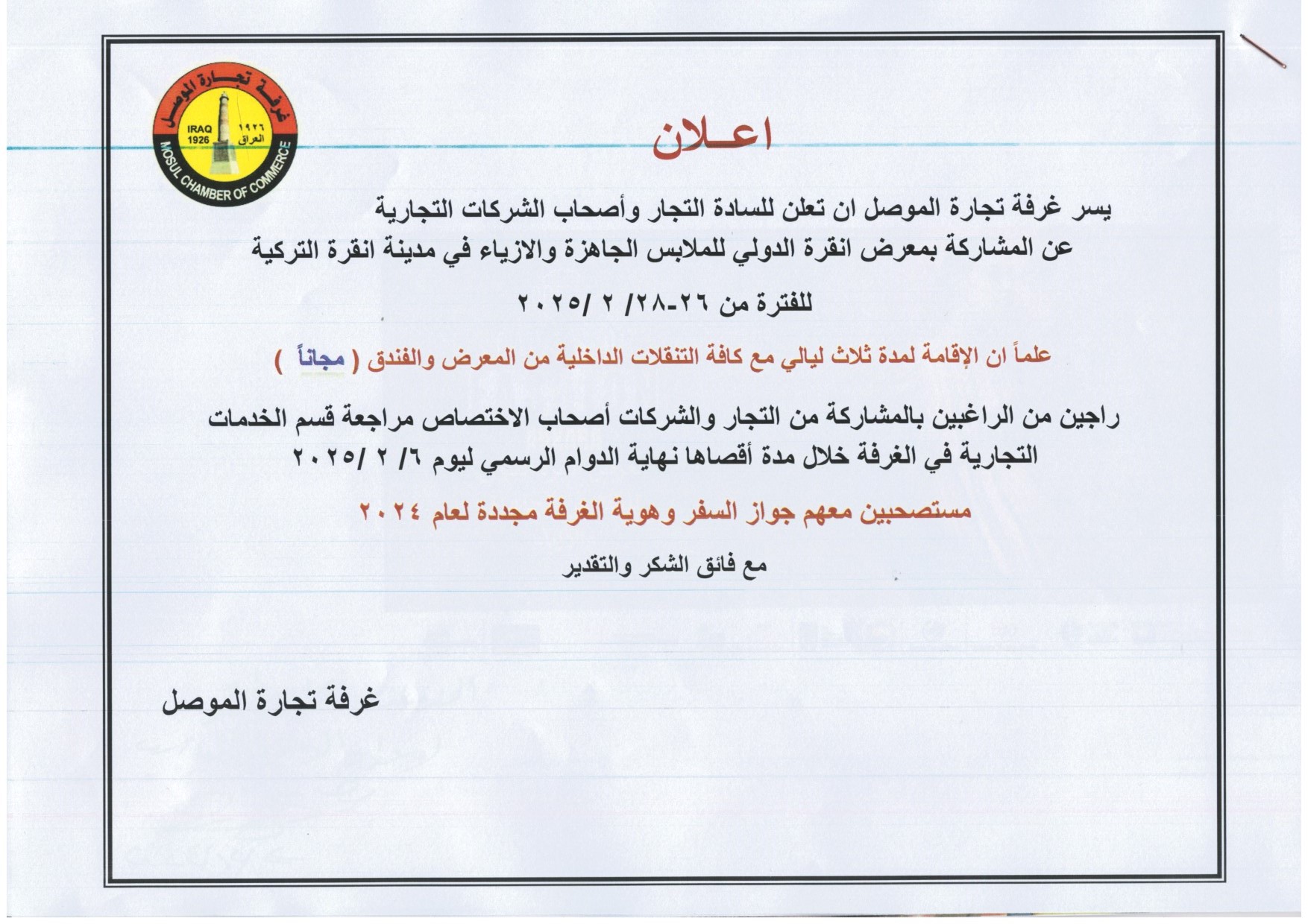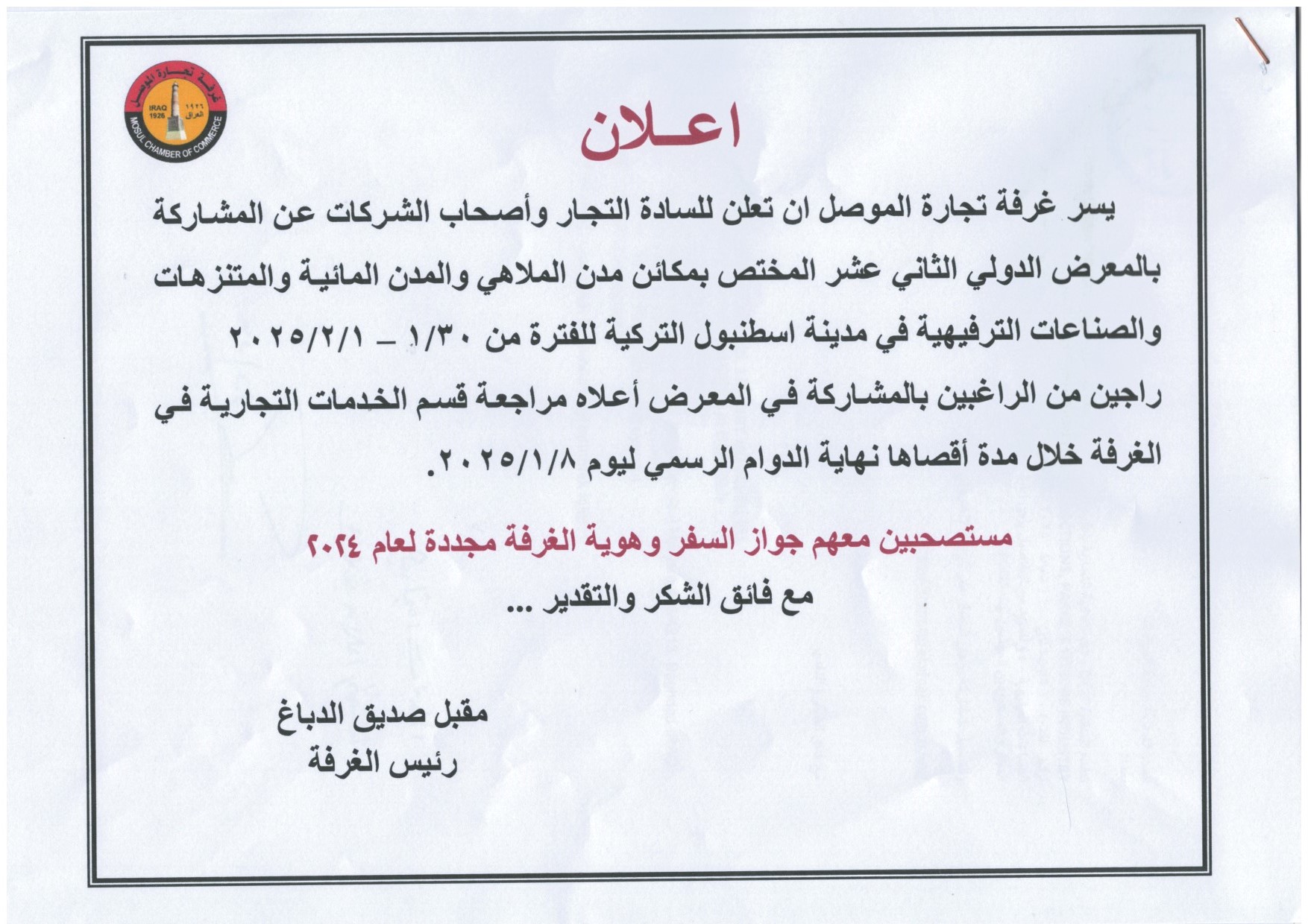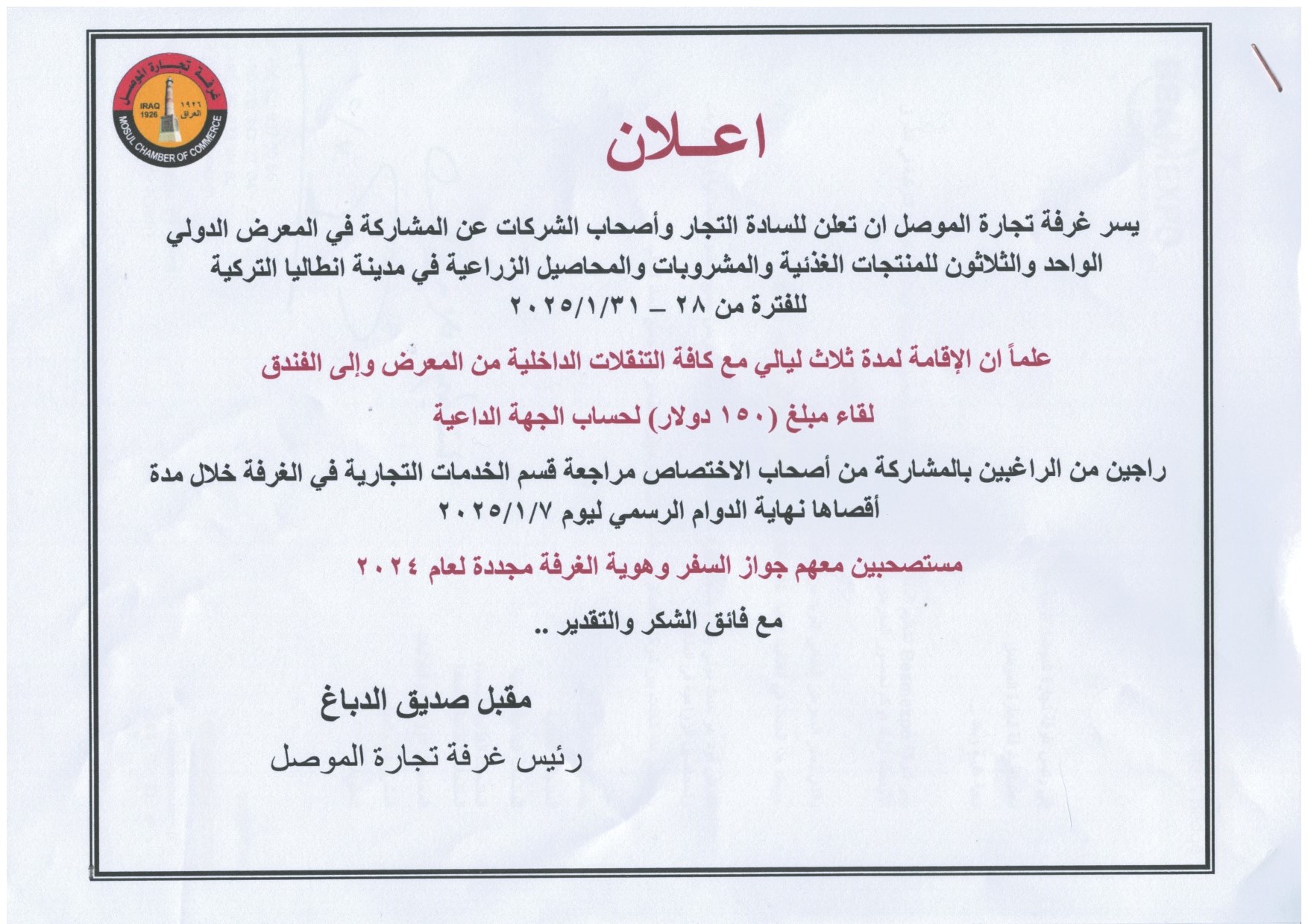 بدعوة كريمة من رئاسة الجامعة التقنية الشمالية لغرفتنا لحضور اعمال منتدى نينوى للمياه الاول ( دجلة توك ) بالتعاون مع جمعية حماة نهر دجلة وبالشراكة مع منظمة التضامن الدولية للفترة من 22-23 كانون الاول الجاري في قاعة المنتدى الثقافي للجامعة اعلاه، شارك عضو مجلس ادارة الغرفة السيد مهند عبدالله