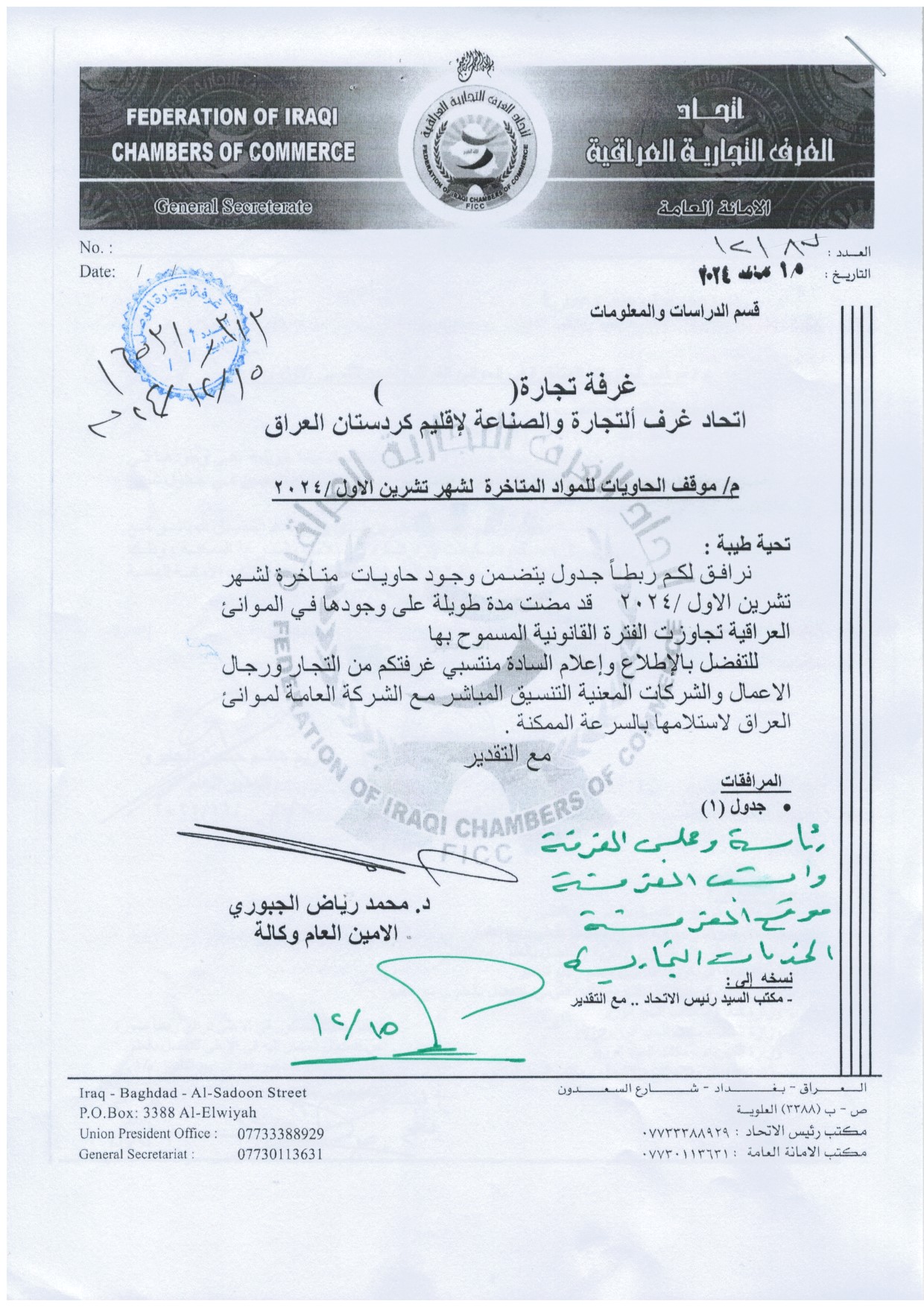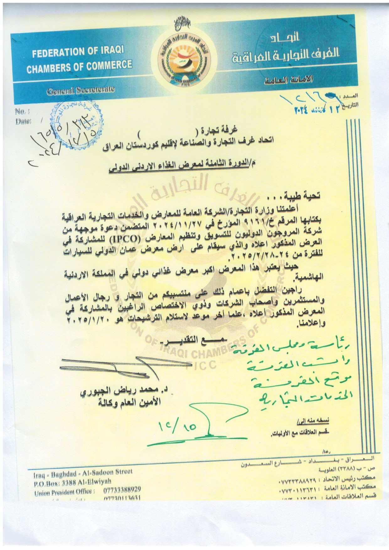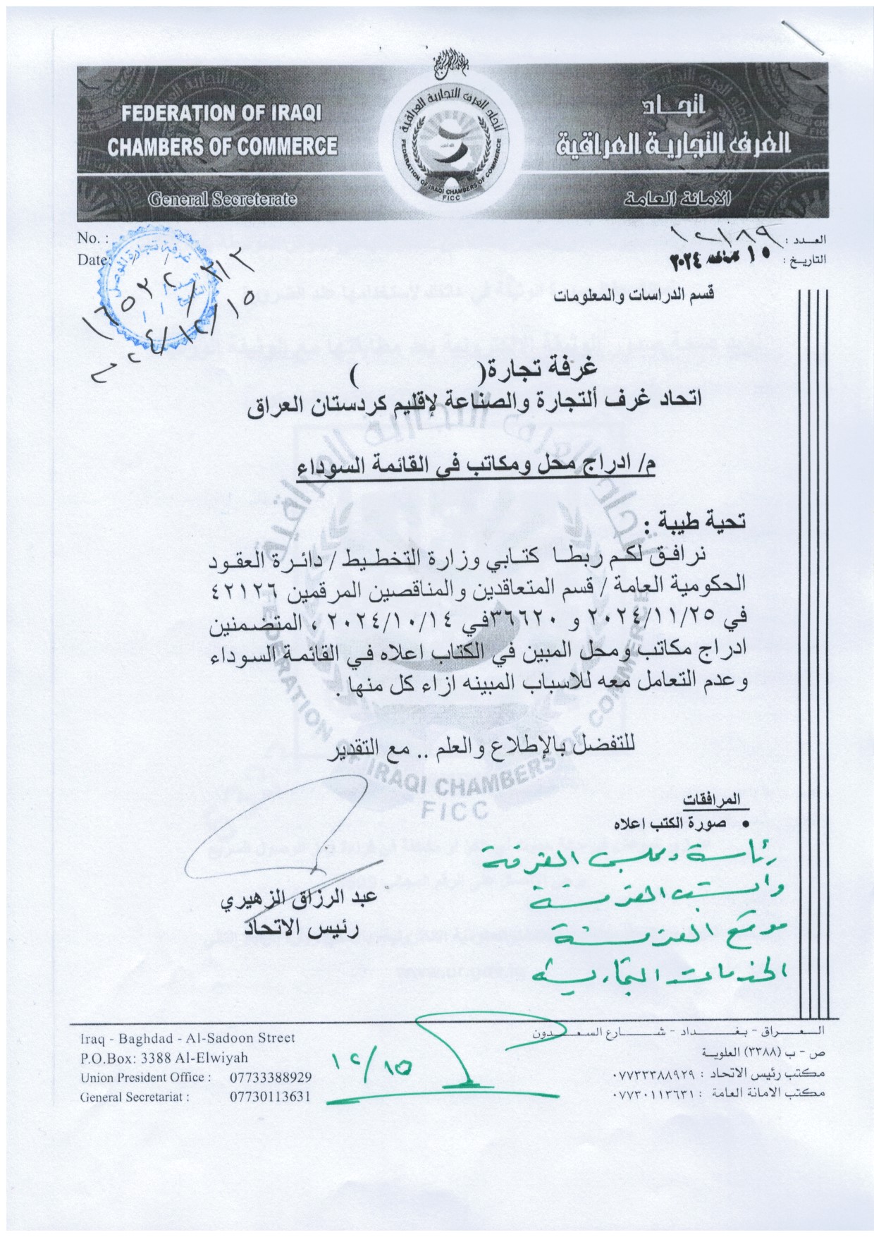 بمناسبة الحملة الوطنية الكبرى للتشجير في محافظة نينوى والمقررة برعاية رئيس مجلس محافظة نينوى الدكتور احمد يونس الحاصود المحترم اقامت الغرفة متمثلة برئيسها السيد مقبل صديق الدباغ وبحضور النائب الثاني لرئيس الغرفة السيد قتيبة عبد الله شنشل وأعضاء مجلس إدارة الغرفة والسادة التجار واصحاب الشركات التجارية الذين ساهموا بالتبرع بالأشجار