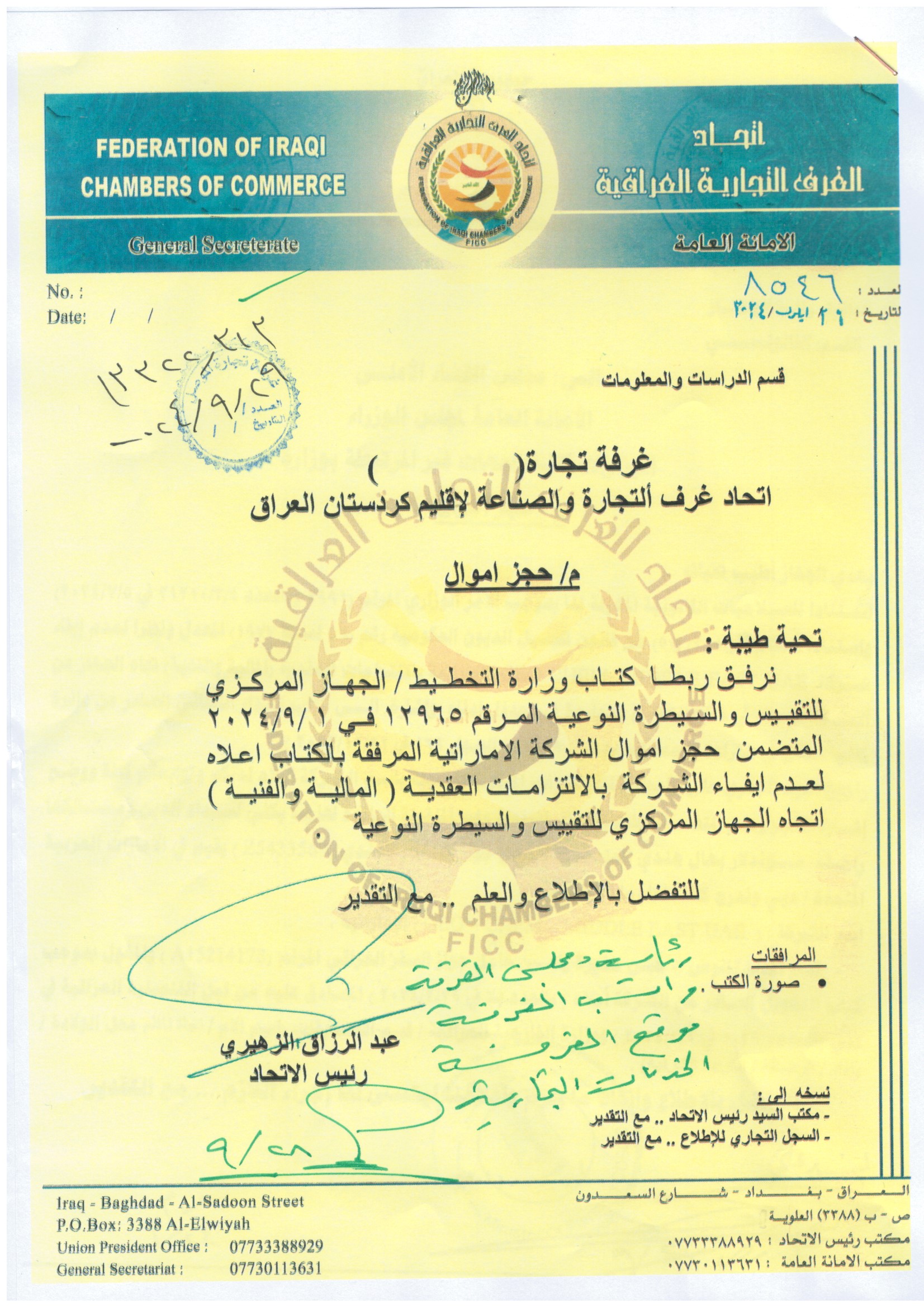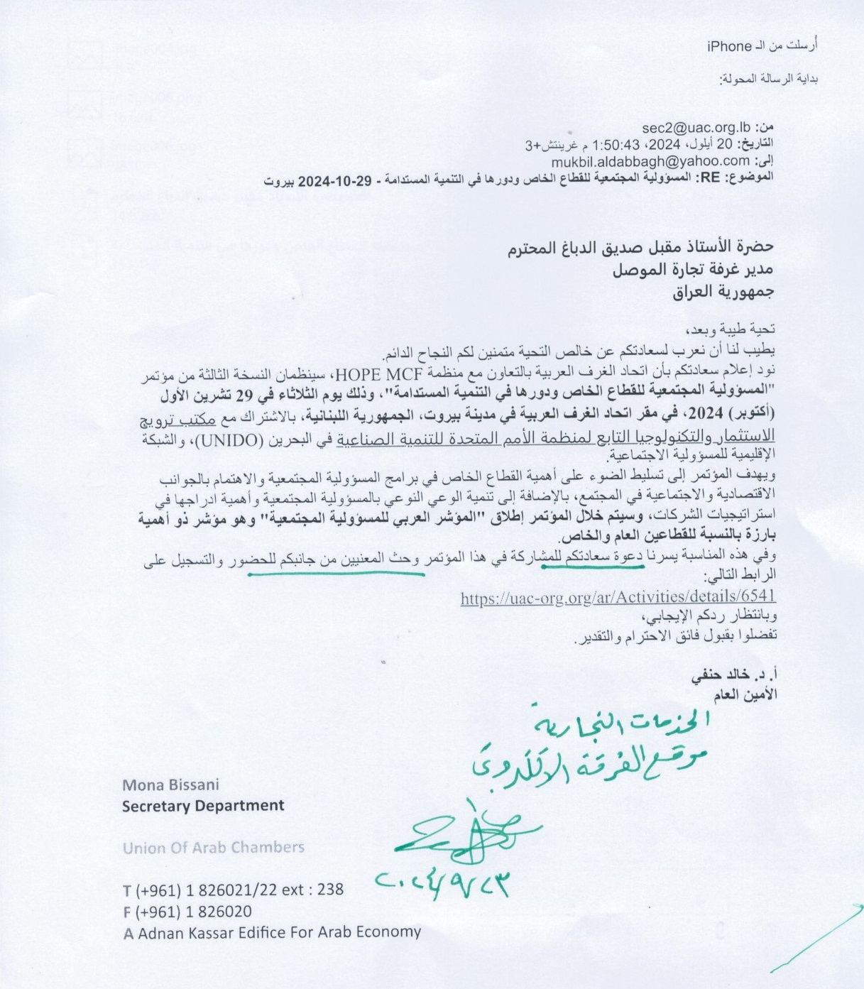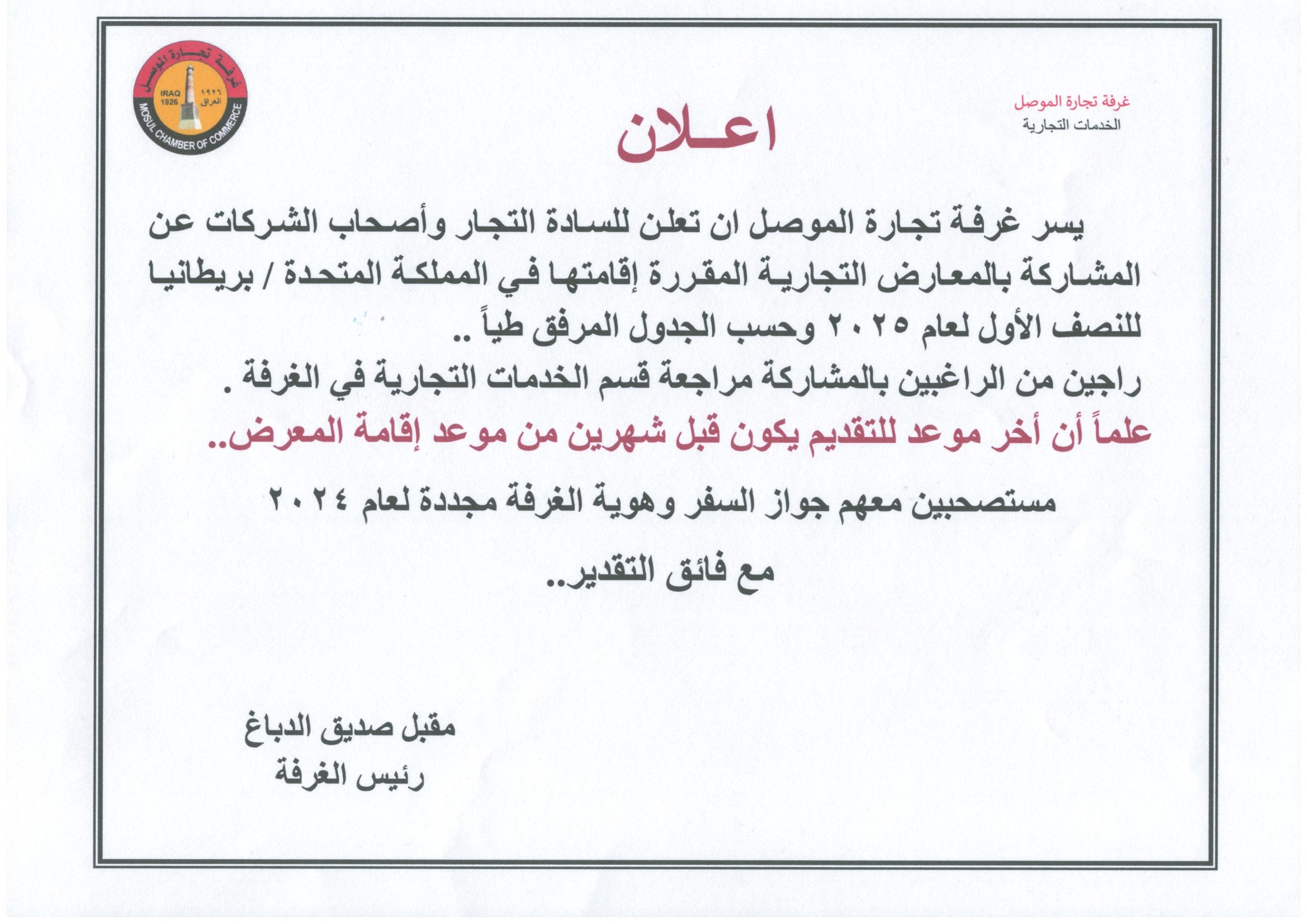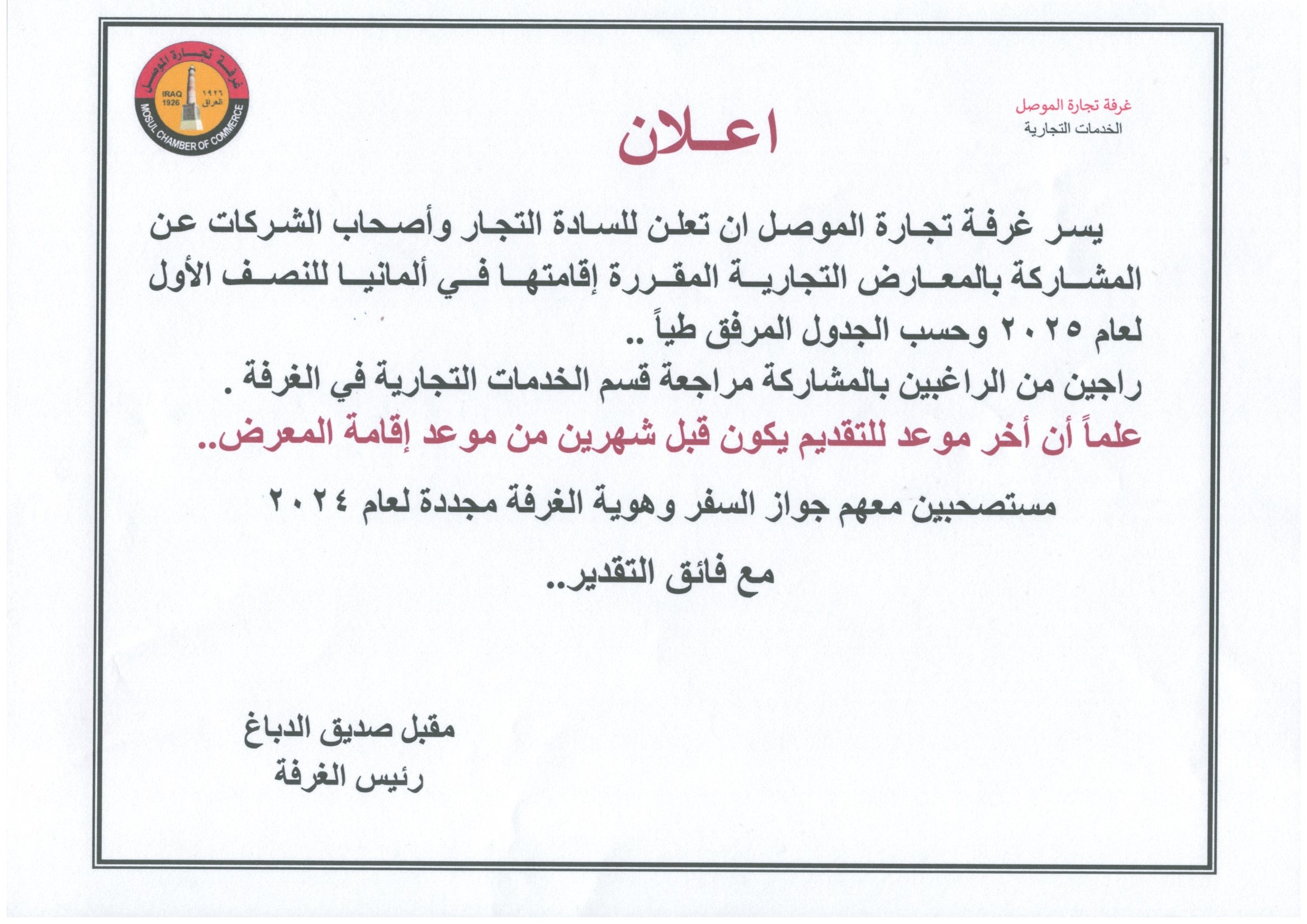غرفة تجارة الموصل23/9/2024 استقبل رئيس غرفتنا السيد مقبل صديق الدباغ والسادة نائباه ومعظم أعضاء مجلس إدارة الغرفة في مقر غرفتنا قبل ظهر يوم الاحد الموافق 22/ايلول الجاري السيد حازم قبلان رئيس رابطة التنمية والتجارة في الموصل يرافقه السيد انور عبد الله مدير مكتب جمعية الموصياد التركية (MUSIAD) في العراق