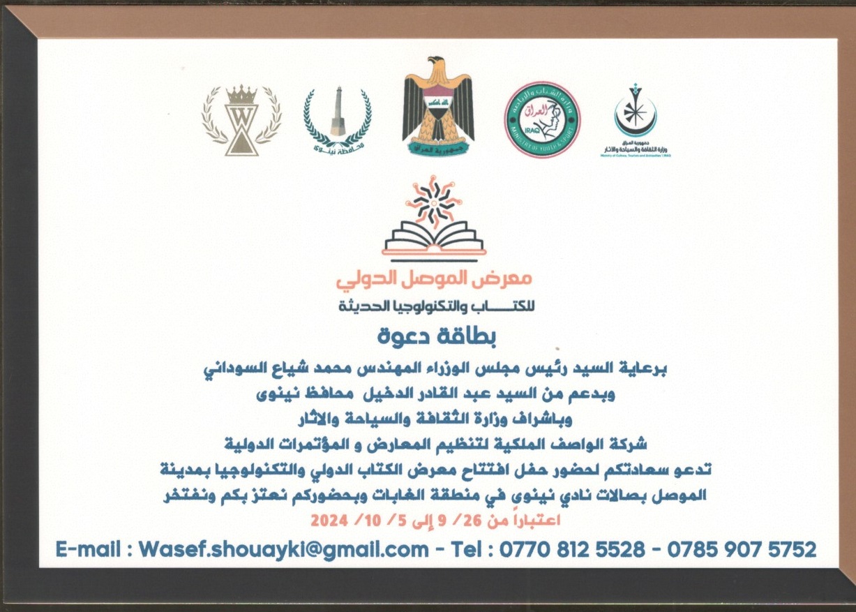 متابعة القراءةبدعوة كريمة من النادي العلمي في الموصل وبرعاية معالي وزير الثقافة والسياحة والاثار الدكتور احمد الفكاك البدراني المحترم حضر رئيس غرفتنا السيد مقبل صديق الدباغ المناسبة الخاصة تحت شعار ( النادي العلمي عطاء مستمر ) على قاعة البهو الملكي للمتحف الحضاري في الموصل يوم الاحد الموافق 1/ ايلول الجاري حضر