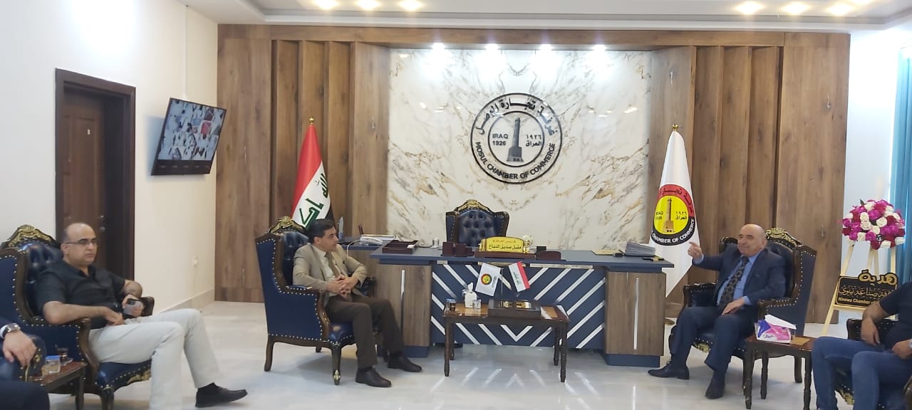 زار مقر غرفتنا عميد كلية الادارة والاقتصاد في جامعة الحدباء الدكتور حسن صبحي العباسي يرافقه مسؤول قسم الاعلام والدراسات صباح يوم الاثنين الموافق 8/تموز الجاري وكان باستقبالهم رئيس غرفتنا السيد مقبل صديق الدباغ وكل من النائب الثاني لرئيس الغرفة السيد قتيبة عبد الله شنشل واعضاء مجلس ادارة الغرفة السادة محمد سالم