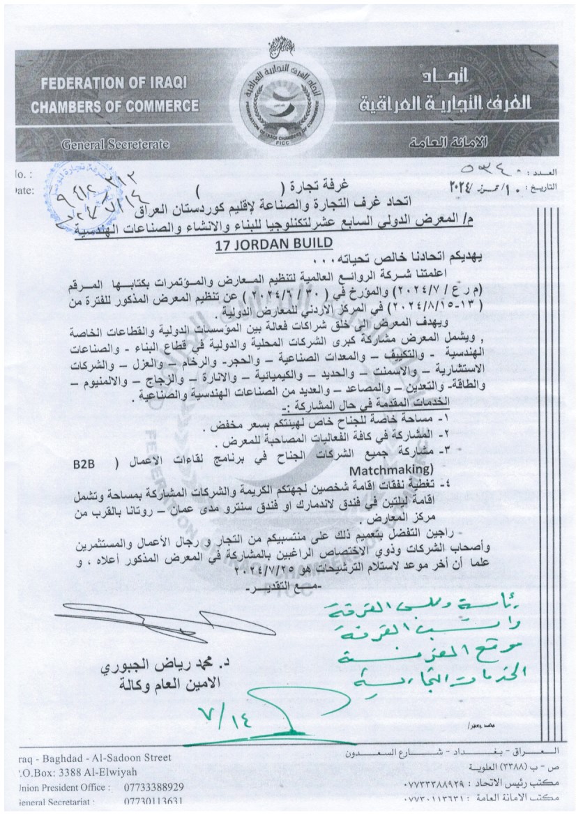 متابعة القراءةاستقبل رئيس غرفتنا السيد مقبل صديق الدباغ ونائبيه الاول السيد يوسف كداوي والثاني السيد قتيبة عبد الله شنشل وعضو مجلس ادارة الغرفة السيد مهند عبد الله كركجه وفد من الجمهورية العربية السورية برئاسة رئيس رابطة المصدرين السوريين للألبسة والنسيج السيد رغيد الحلبي وعدد من التجار واصحاب الشركات السورية في مقر