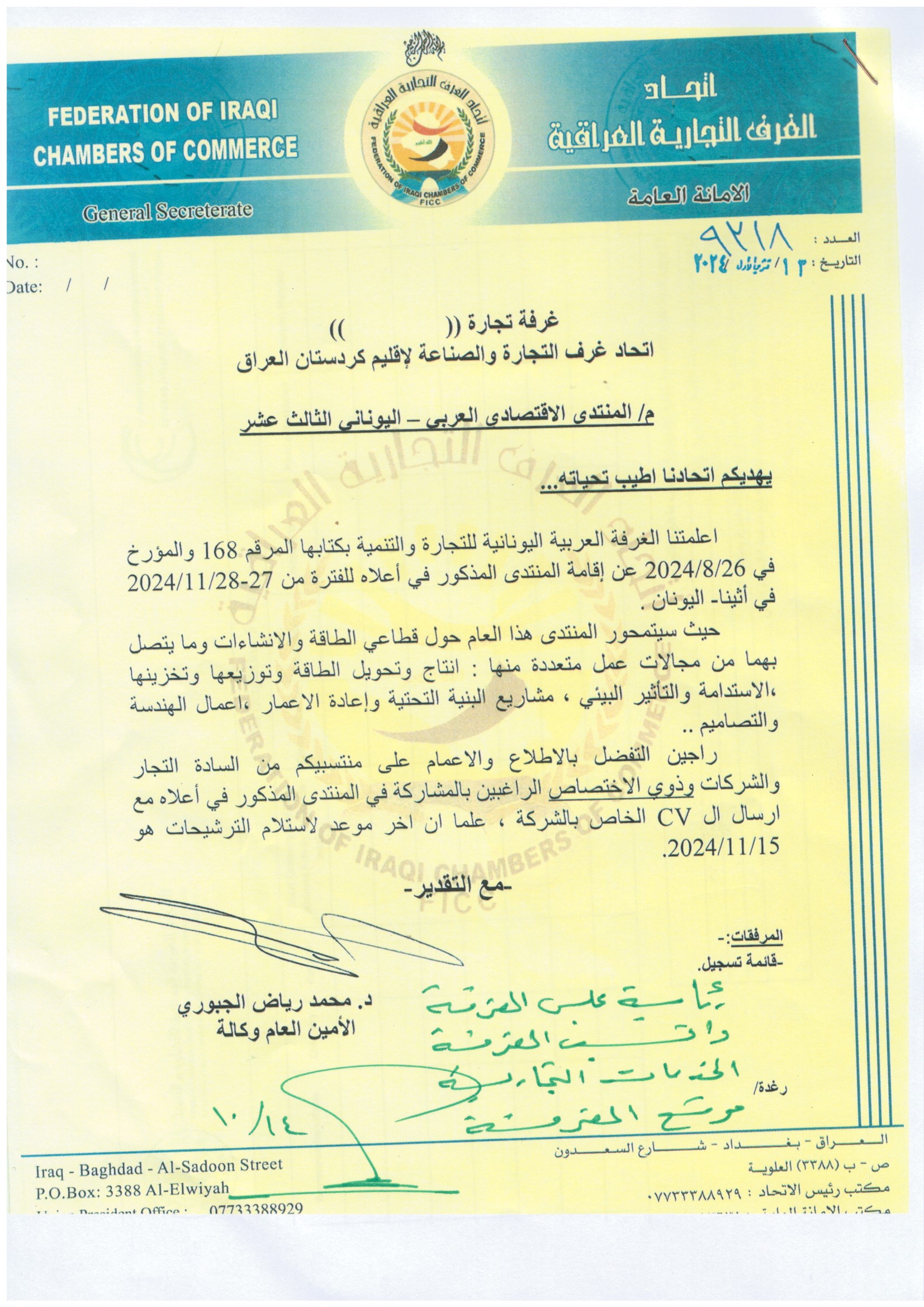 بدعوة كريمة من مركز مستقبل نينوى للدراسات الاستراتيجية بالتعاون والشراكة مع كلية الادارة والاقتصاد في جامعة الموصل حضر رئيس غرفتنا السيد مقبل صديق الدباغ وعضو مجلس ادارة الغرفة السيد مهند عبد الله كركجه حفل افتتاح مؤتمر علمي دولي بعنوان(التنمية والاستقرار المالي والاقتصادي لإعادة الثقة بالدينار العراقي) المقام على المسرح الكبير في