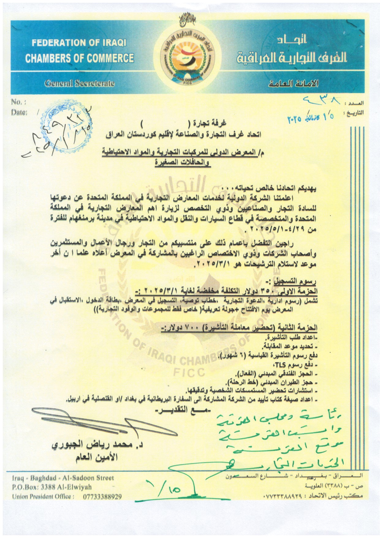 زار مقر غرفتنا قائممقام الموصل الاستاذ صالح حسن علي يرافقه مدير مكتب قائممقام صباح يوم الاربعاء الموافق 15/كانون الثاني الجاري وكان باستقبالهم رئيس غرفتنا السيد مقبل صديق الدباغ، وقدم السيد قائممقام الموصل تهنئة بالسلامة على صحة السيد رئيس غرفتنا بعد نجاح العملية، وقد تناول اللقاء موضوع الاجراءات الخاصة بإجازات مكاتب