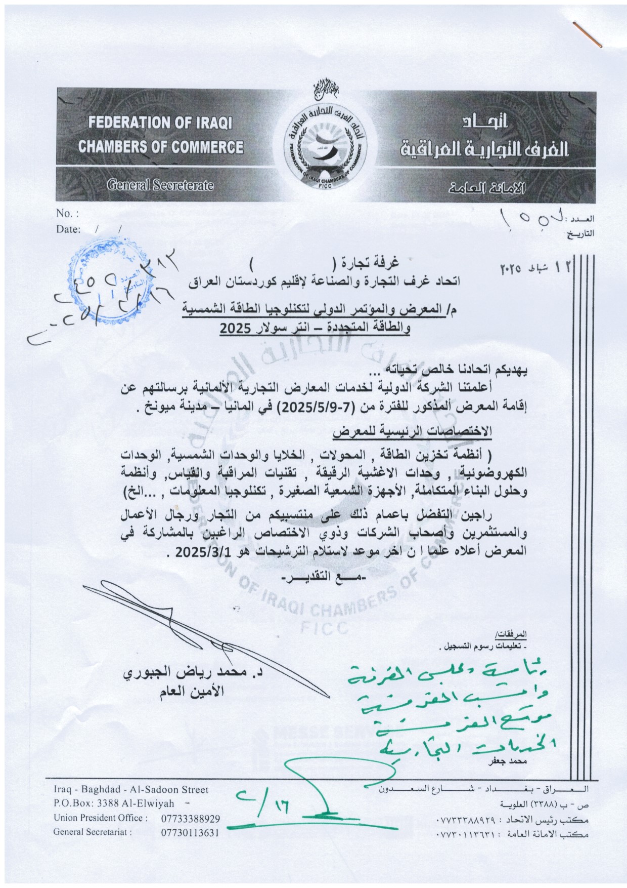 زار مقر غرفتنا الدكتورة شذى الزهيري رئيسة مجلس سيدات اعمال العراق برفقة السيدة شوق غانم مديرة شركة بصمة لتنظيم المعارض والمؤتمرات بعد ظهر يوم الخميس الموافق 6/ شباط الجاري وكان باستقبالهم رئيس غرفتنا السيد مقبل صديق الدباغ وعضو مجلس ادارة الغرفة السيد ظافر كمال ابراهيم ومدير الغرفة السيد مراد حنا