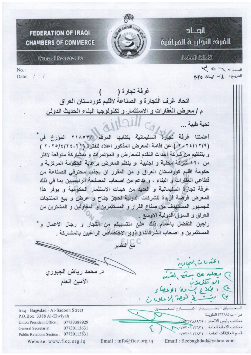 بدعوة كريمة من قبل ادارة معرض كراند هاوس هولد للأثاث المنزلي حضر عضو مجلس ادارة الغرفة السيد مهند عبد الله كركجه حفل افتتاح المعرض اعلاه في منطقة الدركزلية في الموصل مساء يوم الاربعاء الموافق 9/ نيسان الجاري، وقد حضر الحفل عدد من السادة التجار واصحاب الشركات ورجال الاعمال، تجول الجميع بأروقة
