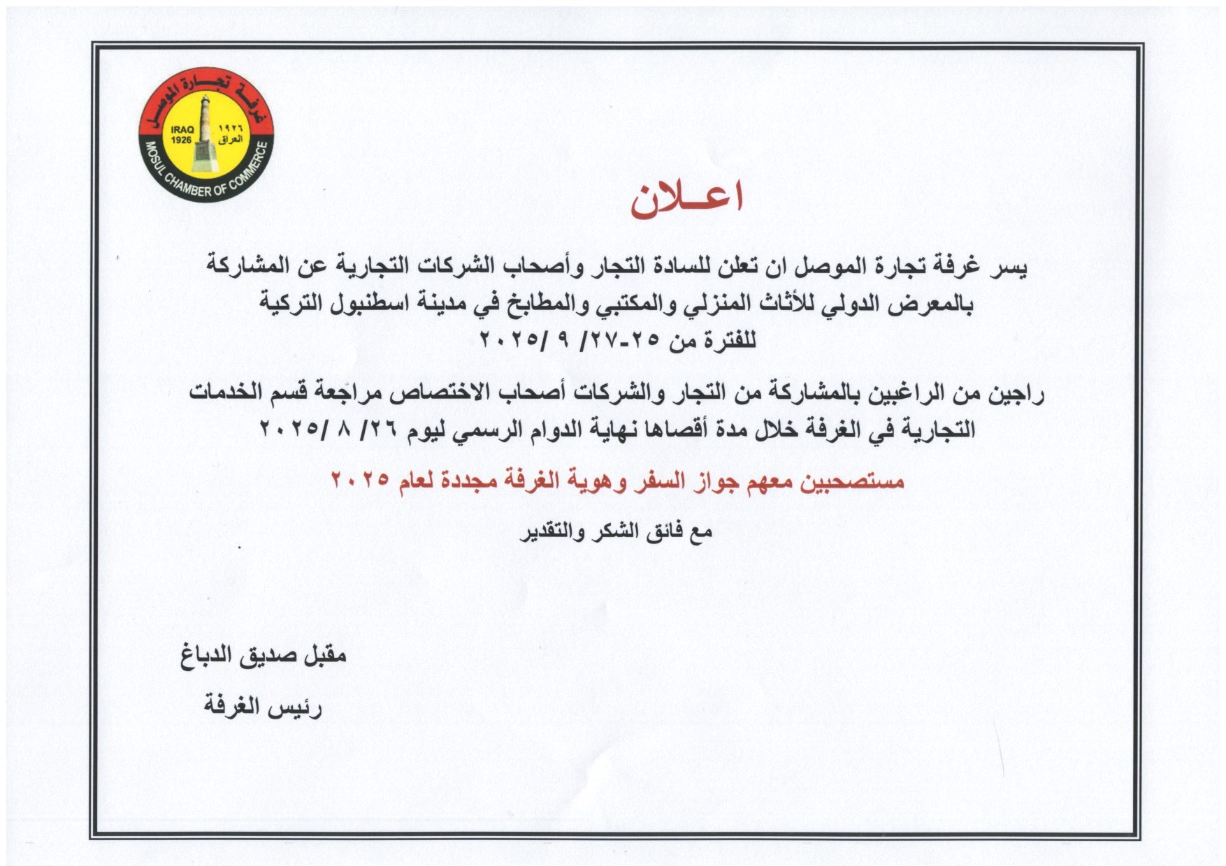 شاركت غرفتنا مع جامعة الموصل كلية الادارة والاقتصاد وبالشراكة مع اكاديمية الرشيد للتعليم المختلط من مدينة اسطنبول التركية في اقامة المؤتمر العلمي الدولي الثالث تحت شعار(الاتجاهات المعاصرة لاستراتيجيات وزارة التجارة/محاكاة لتجارب دولية) صباح يوم الاثنين الموافق 26/ايار الجاري على أروقة المنتدى العلمي الادبي لجامعة الموصل، حضر رئيس غرفتنا السيد مقبل
