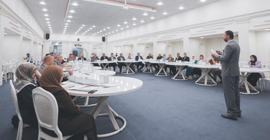 (تمكين المواطنين للتقدم نحو الحوكمة الرشيدة) على قاعة نقابة المهندسين في الموصل، حضر الجلسة مدير عام المركز الوطني للصحة والسلامة المهنية وعدد من السادة ممثلين عن محافظة نينوى ومديرية بلديات نينوى وغرفة صناعة نينوى وهيئة استثمار نينوى ومديرية التخطيط العمراني وشخصيات من منظمات المجتمع المدني,