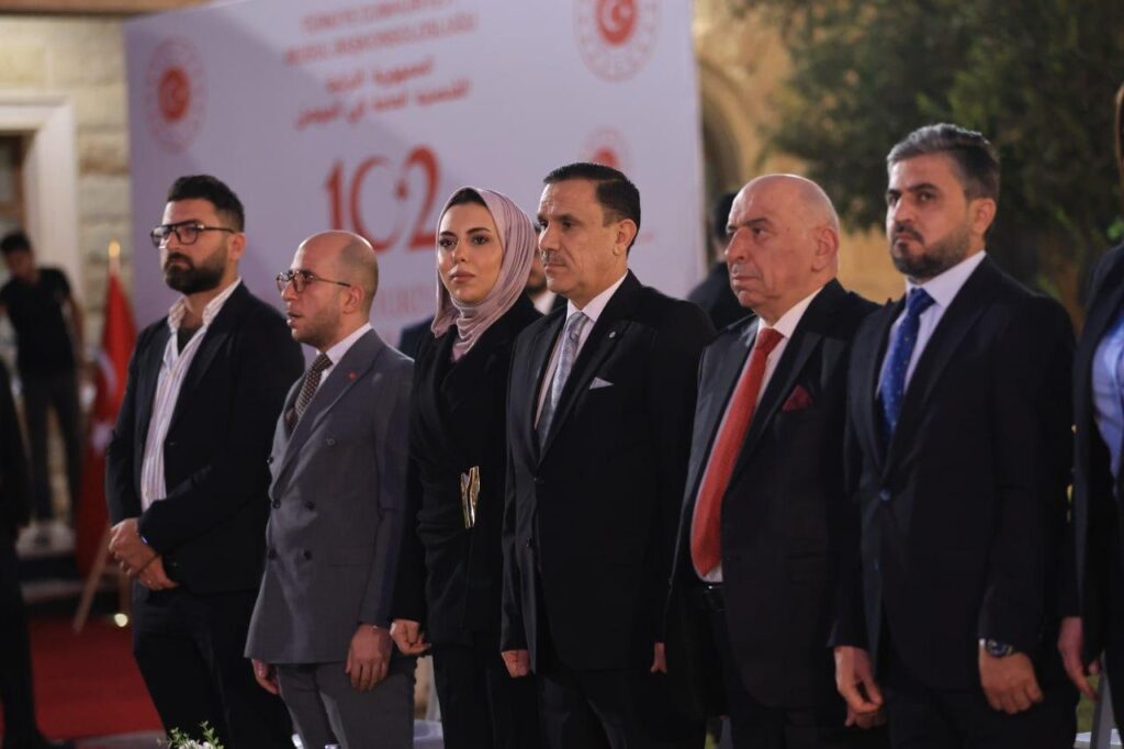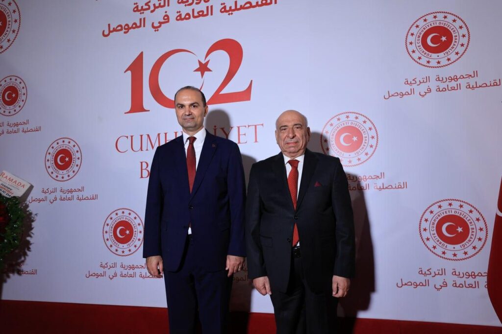 بدعوة كريمة من قبل السيد سرهاد فارلي القنصل العام للجمهورية التركية في الموصل حضر رئيس الغرفة السيد مقبل صديق الدباغ الاحتفال الوطني بمناسبة الذكرى السنوية المئة واثنان لتأسيس الجمهورية التركية بمقر القنصلية وذلك مساء يوم الاربعاء الموافق 29/ تشرين الاول الجاري، وقد حضر الاحتفال معالي وزير الثقافة والسياحة والاثار الدكتور احمد الفكاك المحترم ومحافظ نينوى السيد عبد القادر الدخيل المحترم وعدد من السادة اعضاء مجلس النواب العراقي واعضاء مجلس المحافظة ومدراء الدوائر والمسؤولين وشيوخ العشائر وعدد من السادة  رجال الاعمال في المحافظة، تضمن الاحتفال عزف السلامين الجمهوريين العراقي والتركي وقد القى السيد القنصل كلمة استعرض خلالها الانجازات التركية على مختلف الاصعدة وبخاصة خلال المئة سنة الاخيرة والعلاقات بين تركيا والعراق عموماً ونينوى بوجه خاص كما القى السيد الوزير والمحافظ كلمة بالمناسبة اشاد خلالها بالعلاقات العراقية التركية وما قدمته الشركات التركية لنينوى خلال السنوات الاخيرة، وقد اعرب رئيس غرفتنا عن خالص التهاني والتبريكات للشعب التركي بهذه المناسبة السعيدة وتقديم باقة من الورود للسيد القنصل شاكراً وممتناً على دعوته، مقدماً التهاني والتبريكات للجمهورية التركية والقنصلية بهذه المناسبة السعيدة معرباً عن تطلع غرفتنا الى مزيد من التعاون بين بلدينا وشعبينا الجارين الصديقين انه ولي التوفيق..