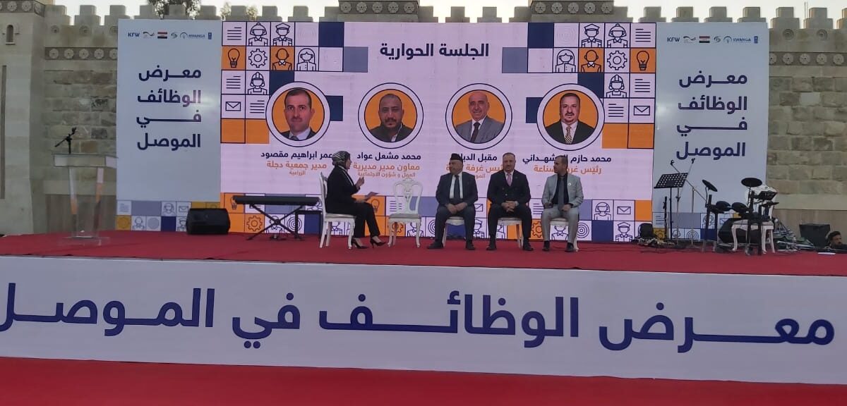 بدعوة كريمة من قبل جمعية دجلة الزراعية وبالتعاون مع برنامج الامم المتحدة الانمائي (UNDP ) حضر رئيس الغرفة السيد مقبل صديق الدباغ افتتاح معرض الوظائف لزيادة فرص التوظيف مساء يوم الخميس الموافق 20 / تشرين الثاني الجاري على ارض اشور مول في غابات الموصل، حضر الندوة عدد من السادة المسؤولين ومدراء الدوائر في المحافظة وبمشاركة العديد من التجار وأصحاب الشركات والنقابات والاعلاميين، تضمنت مراسيم الافتتاح القاء كلمات الترحيب بالسادة الحضور، وتم عقد جلسة حوارية شارك فيها رئيس الغرفة السيد مقبل صديق الدباغ ورئيس غرفة صناعة نينوى الاستاذ محمد علي المشهداني ورئيس جمعية دجلة الزراعية تناولت مناقشة المشاكل والمعوقات التي تواجه سوق العمل، واكد رئيس الغرفة على استعداد الغرفة لتقديم كافة الدعم والتسهيلات اللازمة للشباب والخريجين العاطلين عن العمل موضحاً ان الغرفة اقامت على انشاء شعبة خاصة في غرفتنا بريادة الاعمال للمشاريع الصغيرة والمتوسطة واقامت العديد من الدورات التدريبية والندوات وتم تقديم الدعم المادي والمعنوي لبعض المشاريع بالتعاون مع المنظمات الدولية والمحلية والبنك المركزي والمصارف الاهلية، وتم فتح المناقشة مع السادة الحاضرين في الجلسة التي استمرت لمدة ساعتين متواصلة وفي نهاية الجلسة أعرب السيد رئيس غرفتنا شكره وامتنانه لكل السادة المشاركين والحاضرين سائلين الله ان تكون خطوة على طريق دعم اقتصادنا وخدمة لا سرتنا التجارية الكريمة .
