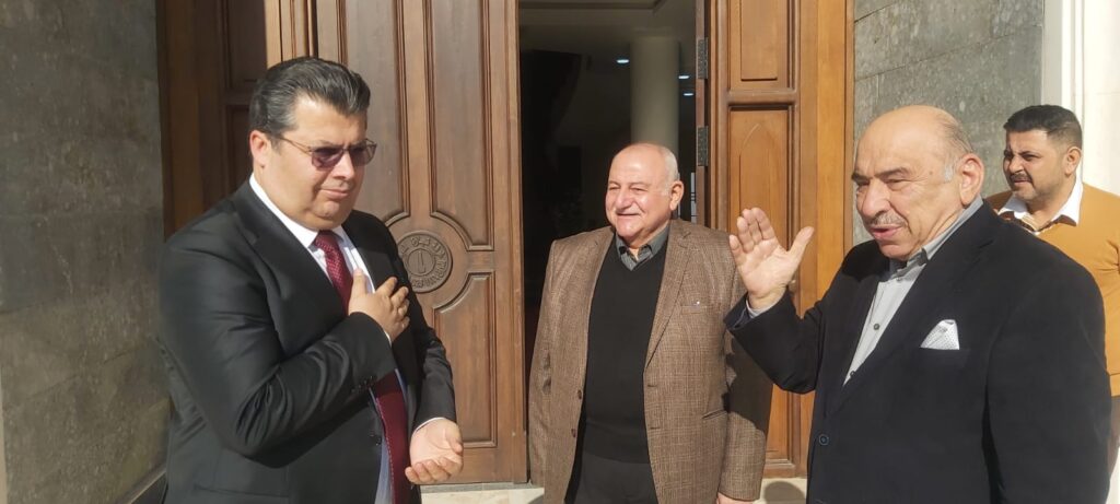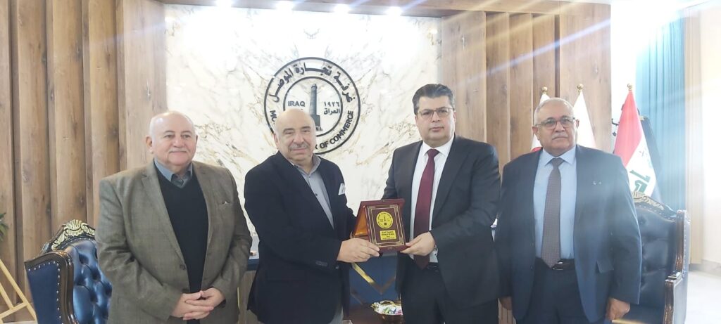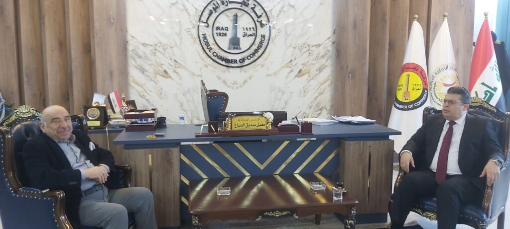 زار مقر غرفتنا عضو مجلس النواب العراقي الأسبق معاون رئيس المكتب السياسي للحزب الديمقراطي الكردستاني في الموصل الاستاذ بشار الكيكي المحترم والوفد المرافق له صباح يوم الخميس الموافق 18/ كانون الاول الجاري وكان باستقبالهم رئيس الغرفة السيد مقبل صديق الدباغ وبحضور السيد قتيبة عبدالله شنشل، وجرى خلال اللقاء بحث أهمية تطوير العلاقات التجارية والاقتصادية في محافظتنا الحبيبة نينوى، وقد طرح السيد رئيس الغرفة بعض الآراء والمقترحات التي تخدم شؤون التجارة والتجار مؤكدا على اهمية تطوير وتنشيط التعاون الاقتصادي بين الاقليم ومدينة الموصل وعلى ضرورة تأمين انسيابية وسهولة انتقال البضائع والسلع وموضوع مكاتب الصيرفة والمصارف الاهلية وقد جرت مناقشات عديدة مما اغنى اللقاء وأسس لإنجازات مثمرة بأذن الله، وفي نهاية اللقاء قدم رئيس الغرفة درع الغرفة للسيد بشار الكيكي شاكراً حضوره املين ان تسهم الزيارة أعلاه في تحقيق الخير والفائدة للجميع ومن الله التوفيق..