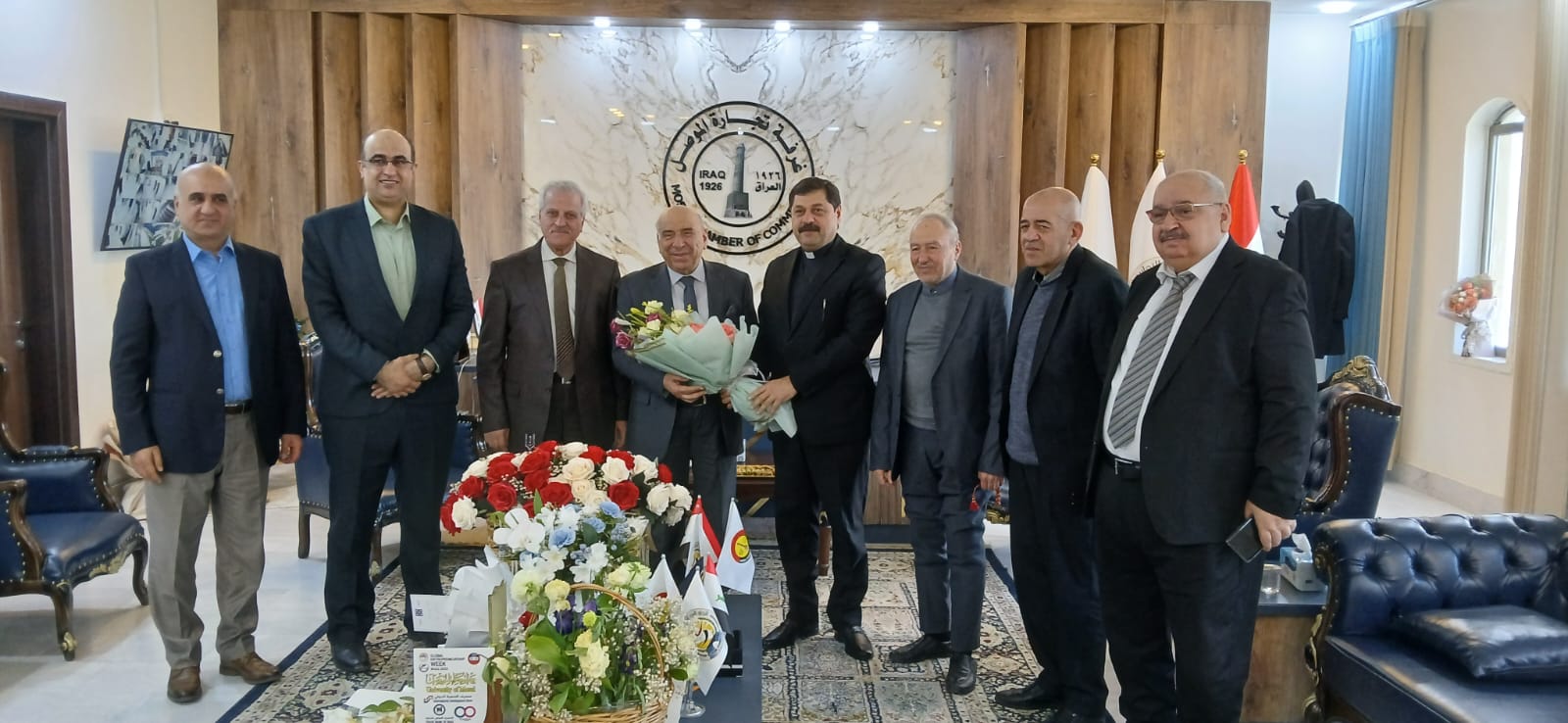 زار مقر غرفتنا مسؤول كنائس الموصل الاب رائد عادل كلو والمساعد الاداري لجامعة الفرقان الدكتور عدنان صفاوي بعد ظهر يوم الاثنين الموافق 16/شباط الجاري وكان باستقبالهم رئيس غرفتنا السيد مقبل صديق الدباغ وكل من النائب الاول لرئيس الغرفة السيد احمد محمد ابو عباتين والنائب الثاني لرئيس الغرفة السيد مهند عبد