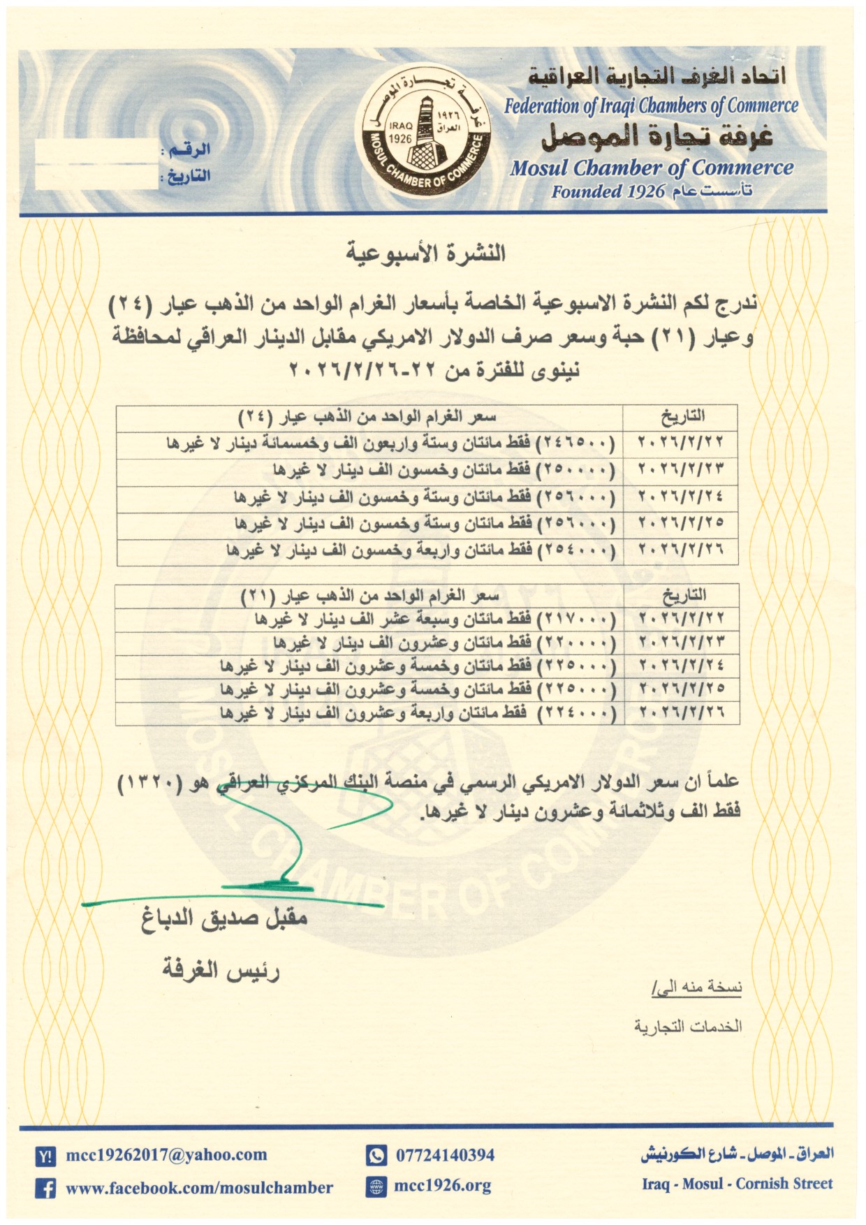 حضر رئيس الغرفة السيد مقبل صديق الدباغ افتتاح فعاليات مهرجان الموصل للطعام الرابع على ارض بارك متنزه المثنى مساء يوم الاربعاء الموافق 25/شباط الجاري، وقد حضر حفل الافتتاح عضو مجلس النواب العراقي الاستاذ خالد العبيدي ورئيس مجلس محافظة نينوى الدكتور احمد الحاصود والنائب الاول لمحافظ نينوى السيد غزوان الداؤودي وعدد