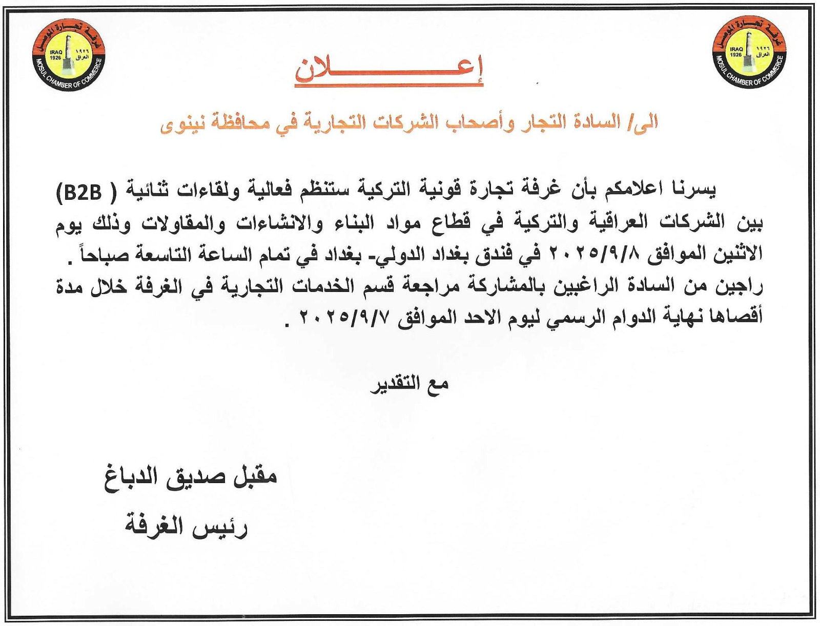 الاعلاناتنشاطات الغرفة وقفة احتجاجية بخصوص التعرفة الكمركية MCC 8 يناير، 20268 يناير، 202667 متابعة القراءة