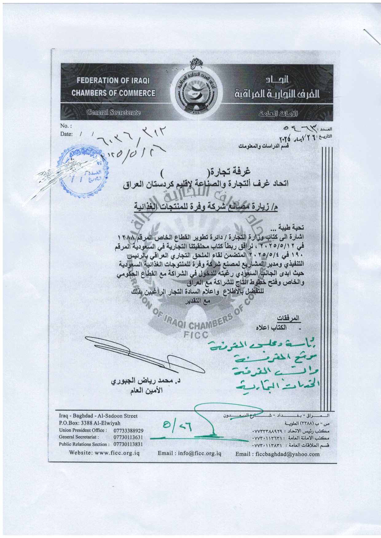 زيارة مصانع شركة وفرة للمنتجات الغذائية