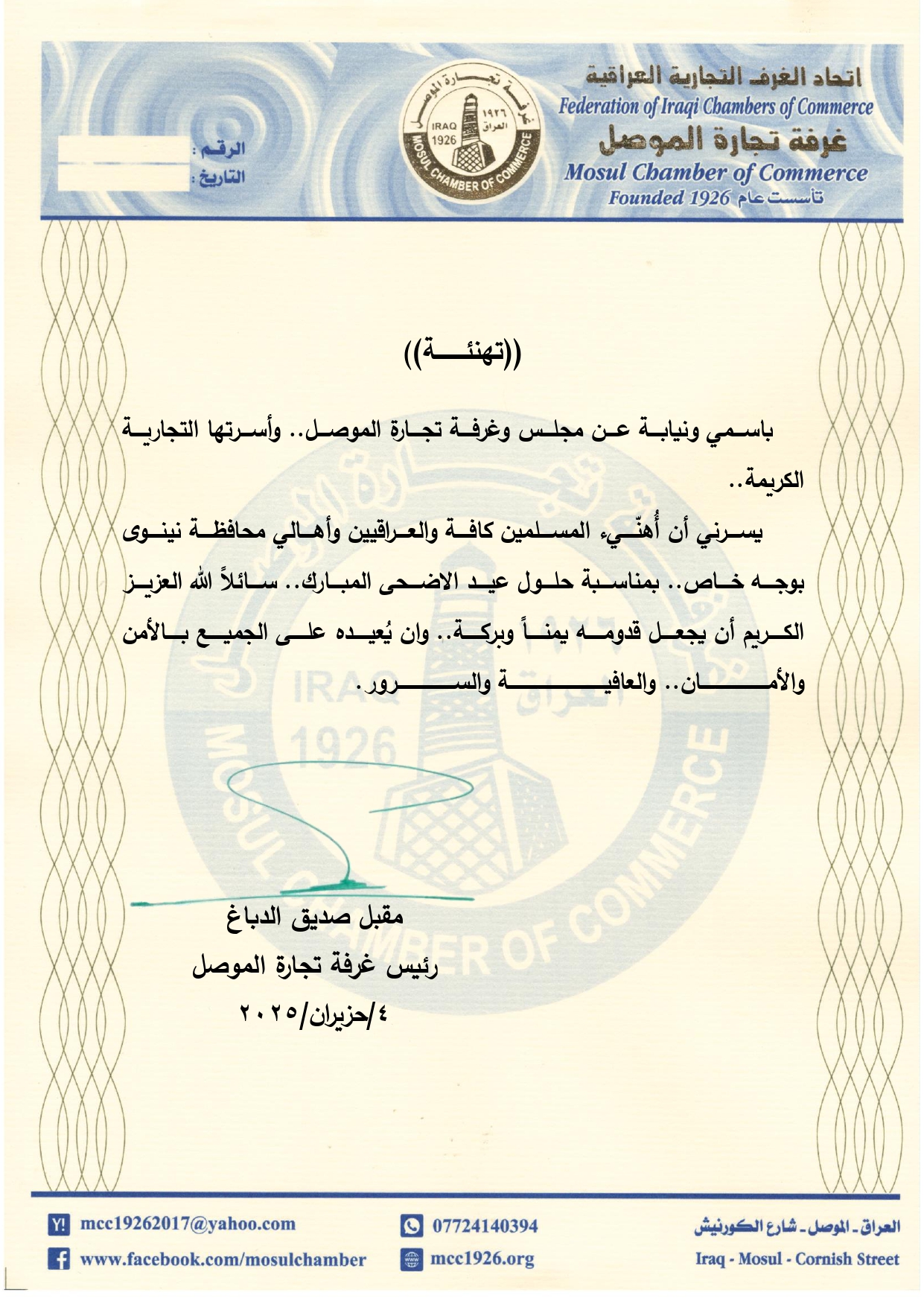 بدعوة كريمة من قبل القنصل العام للجمهورية التركية في الموصل السيد سرهاد فارلي شارك رئيس الغرفة السيد مقبل صديق الدباغ اجتماعاً مع سعادة القنصل التركي بمقر القنصلية وذلك مساء يوم الخميس الموافق 31/ تموز/2025.. وقد حضر الاجتماع الملحق التجاري في القنصلية التركية السيد مهمت اوزكوج ورئيس غرفة تجارة وصناعة مدينة